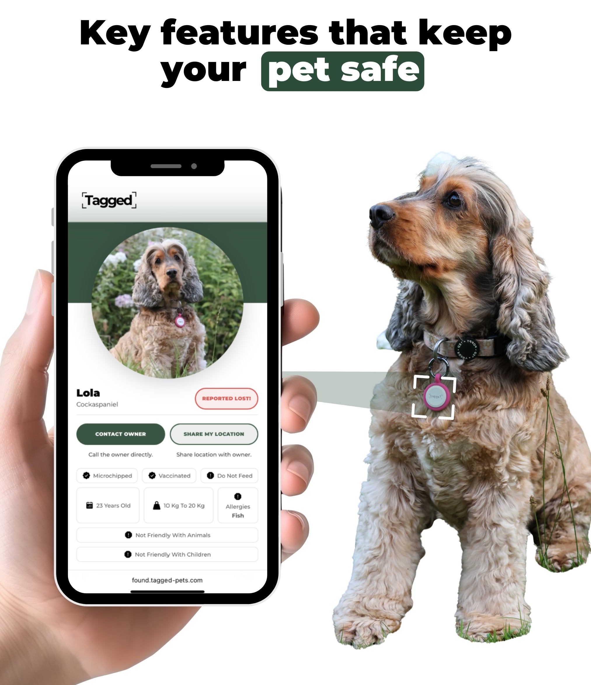 Designed for modern pet care; reunite your pet with multiple owners, family members or sitters through multiple contact points.